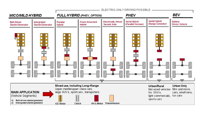 Automotive Industrie bis 2020: Nur die bereits existierende Verbrennungsmotoren-Technik zu verbessern, reicht heute nicht mehr aus. Auch wenn das Potenzial der Emmisionsreduzierung von Benzin und Diesel bis 40% bzw. 30% bis 2020 reichen wird, gibt es immer noch einen Unterschied von mehr als 10 g/km CO2 für das europäische Ziel von 95 g/km. Daher sind ernste Anstrengungen in der Antriebsstrang-Elektrifizierung nötig. Manche Automobilhersteller investieren so bereits in die Modernisierung des Fahrzeugsniederspannungs-Bordnetz, indem sie die Spannung von 12V auf 48V erhöhen.