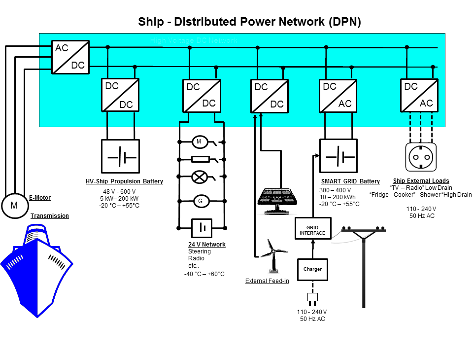 ACTARON bietet Studien und Engineering für elektrische Versorgung und Antriebsstränge für integrierte Nieder- und Hochspannungs-DC-Systeme.